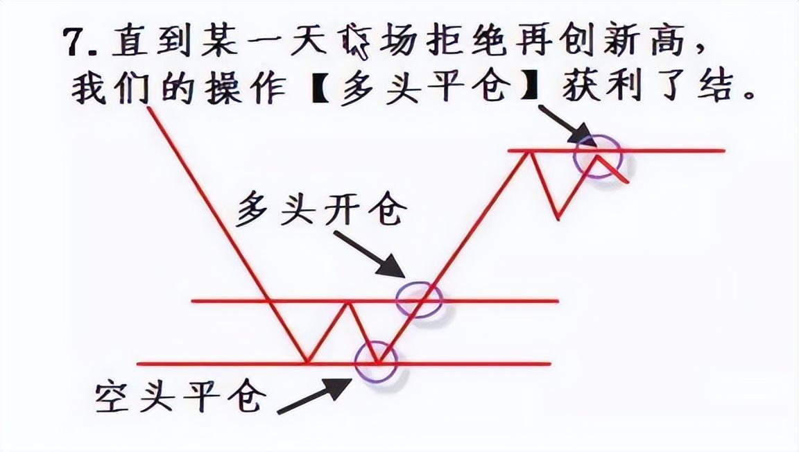 7、直到某一天市场拒绝再创新高鼎合网配资,我们的操作【多头平仓】获利了结,此时应快速卖出,止盈。