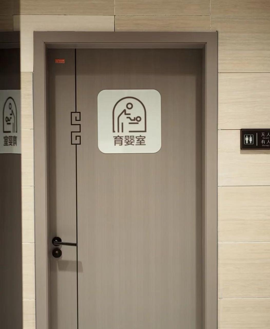 改造后,我们一同更换了育婴室的标识,将“男士止步”的标语替换成了“共同育儿”,并在育婴室内区隔出了哺乳室的空间,用一道门,保障外部的育婴室供有需要的家长使用,而内部的哺乳室仅供需要私密的哺乳妈妈们使用。