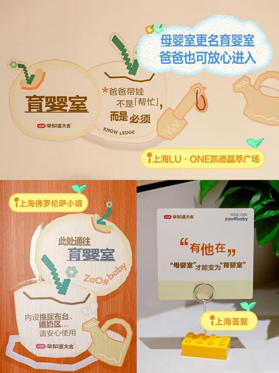 今年的母亲节开始,我们持续发起了一次特别的行动,将“母婴室”改为“育婴室”。我们联系了 100 多家商场,最终和 5 家商场一起,更换了“母婴室”标识,摘下了“男士止步”的标语,截至目前,仍有商场、公共空间在持续加入。