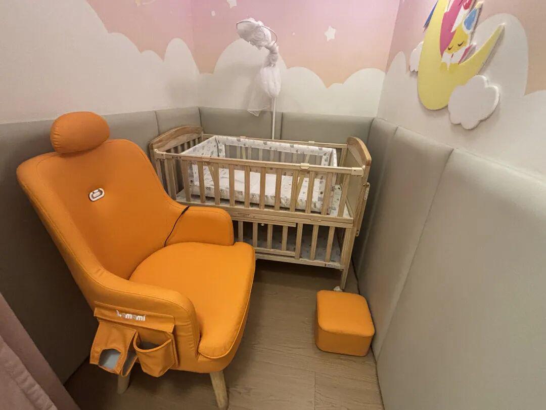 这样,在育婴室内,就可以单独开辟出一个哺乳室,两者有一扇门区隔,哺乳室可以满足妈妈们哺乳或背奶的需要,育婴室可以供有育儿需求的爸爸、妈妈共同使用。
