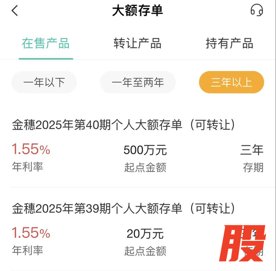 对于“工商银行将三年期大额存单门槛拉至100万元”的市场消息,记者查询工商银行手机APP发现,目前工商银行三年期大额存单有两款产品在售:2025年第三期3年期个人大额存单(20万元起存)与2025年第四期3年期个人大额存单(100万元起存),利率均为1.55%。但100万元起存的3年期大额存单已售罄。
